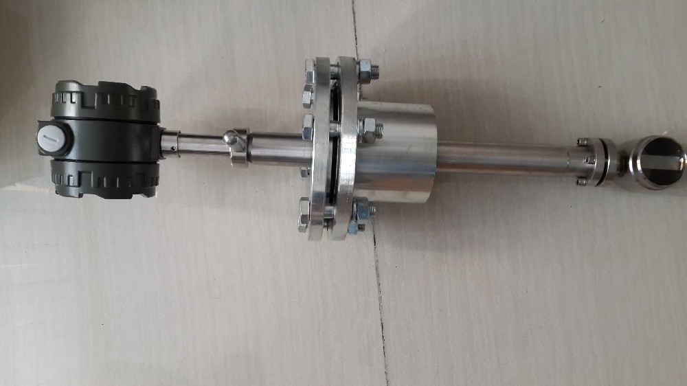3.放上墊片,插入流量計,用法蘭連接。若此時有球閥,應先將球閥放在短管上連接好,再打開球閥,插入流量計;