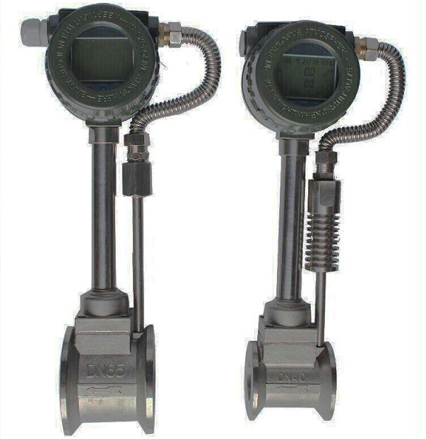 在測量蒸汽的質(zhì)量流量時,由于其密度隨著溫度和壓力的變化而變化,所以要隨時對蒸汽進行補償,要用鉑熱電阻和壓力變送器與渦街傳感器共 同組成質(zhì)量流量測量系統(tǒng)。無任是測量飽和蒸汽還是過熱蒸汽,如果溫度和壓力比較穩(wěn)定,為降低設(shè)備成本,也可以根據(jù)工況狀態(tài),用設(shè)定固定值的辦法補償密度。 其它介質(zhì)可根據(jù)實際情況組成質(zhì)量流量測量系統(tǒng)。